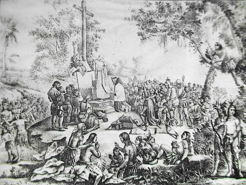 El 8 de junio de 1518 Juan de Grijalva descubrió Tabasco para el mundo occidental, y nueve meses más tarde, el 12 de marzo de 1519 llegó a las costas tabasqueñas, Hernán Cortés, quien después de derrotar a los indígenas chontales, en la Batalla de Centla, fundó el 25 de marzo la población de Santa María de la Victoria. El 17 de abril de 1519, frente a una gran cruz y ante la imagen de la Virgen María de la Victoria, fray Bartolomé de Olmedo celebró la que sería la primera misa en lo que hoy es México, y, a partir de entonces se impartió el bautismo con regularidad.
